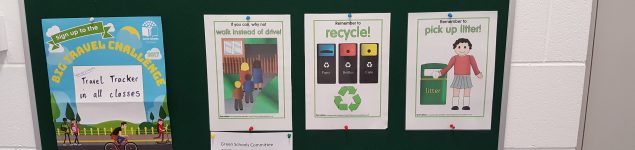 Le Chéile NS is currently in the process of applying for our Green Schools Travel flag. Mrs. McInerney has been working hard in devising a programme to best suit our school. We have also set up a students’ committee consisting of Ryan McNamara, Jade McCormack, Leroy Byrne, Reece Doherty, Colin Hogan, Charlie O’Mara and Willie Casey. Both Galvone NS and Southill Junior School had numerous